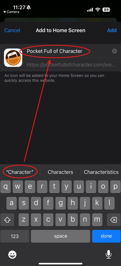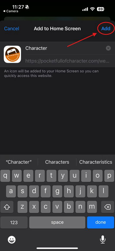 4. Tap "Install" to install Pocket Full of Character as a web app.