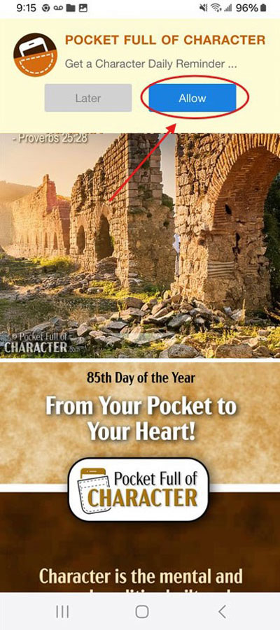 7. When prompted and if you choose so, tap "Allow" to receive different character traits on a daily. If asked again, tap to allow, if you have already chosen so.